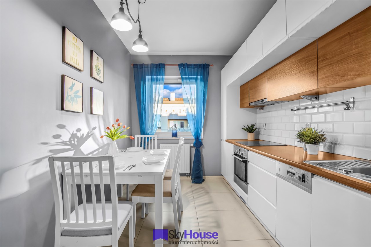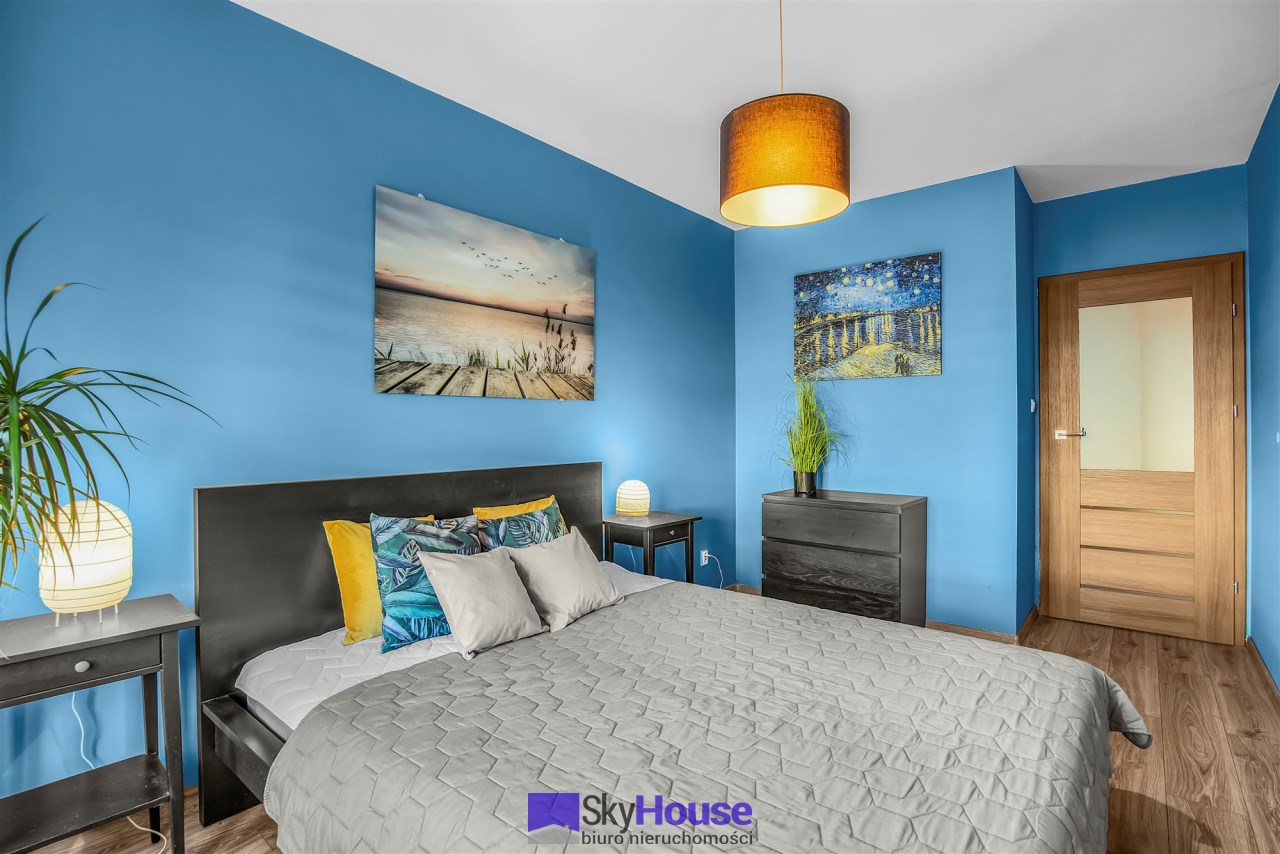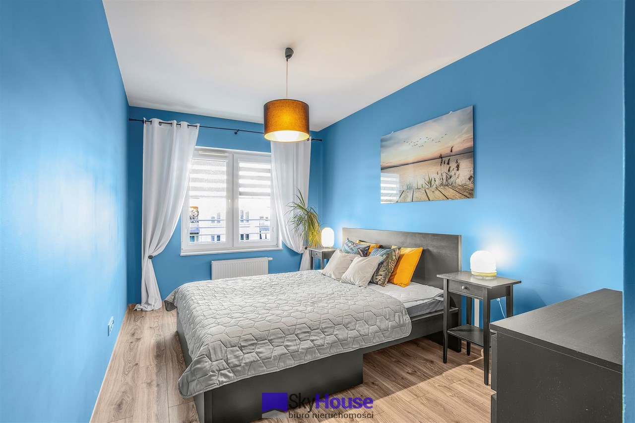 Mieszkanie jest zadbane, wygodne do życia, w pełni umeblowane i wyposażone w niezbędny sprzęt AGD (piekarnik, płyta indukcyjna, zmywarka, lodówko-zamrażarka). W pokoju dziennym kanapa, regały, szafa w zabudowie. W sypialni podwójne łóżko z materacem, komoda, szafki nocne. Łazienka z wanną z funkcją prysznica, pralka w łazience 60 cm. W przedpokoju duża 3-drzwiowa szafa.