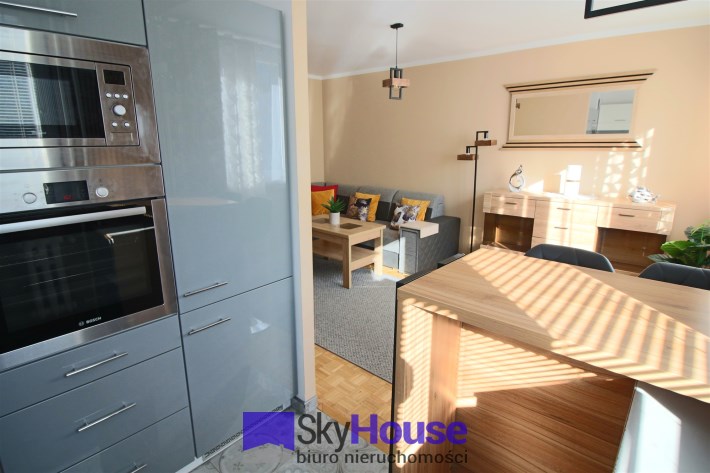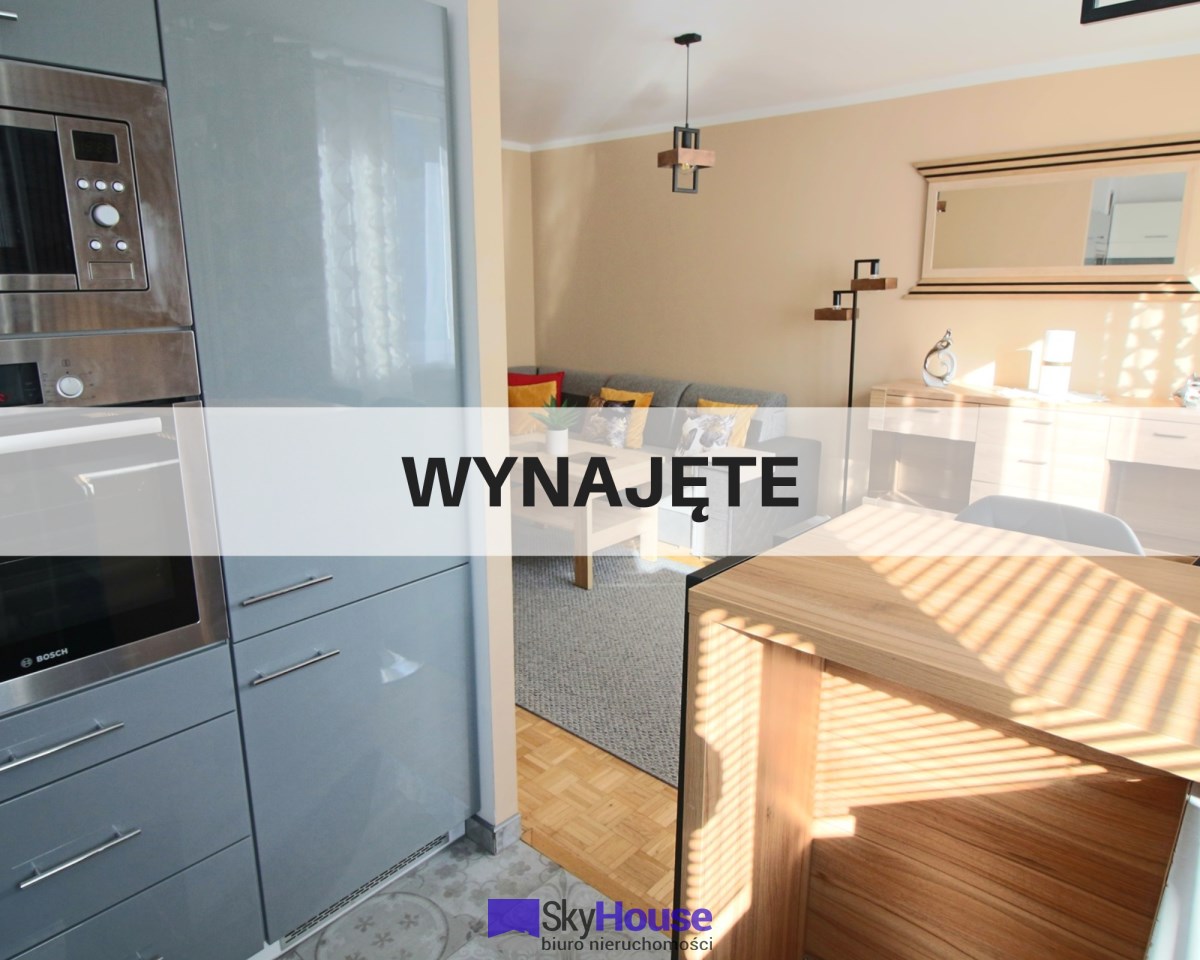 Mieszkanie jest w pełni wyposażone, gotowe do wynajęcia od zaraz. Pokój dzienny z wygodną kanapą, stolikiem kawowym, komodami i TV. Komfortowo wyposażona kuchnia (lodówko-zamrażalka, piekarnik, płyta elektryczna, zmywarka, mikrofalówka, czajnik elektryczny), wygospodarowane miejsce do spożywania posiłków. Sypialnia z wygodnym podwójnym łóżkiem oraz pojemną szafą. Z sypialni wyjście na balkon. W przedpokoju szafa - dodatkowa powierzchnia do przechowywania. Łazienka z pralką i prysznicem.