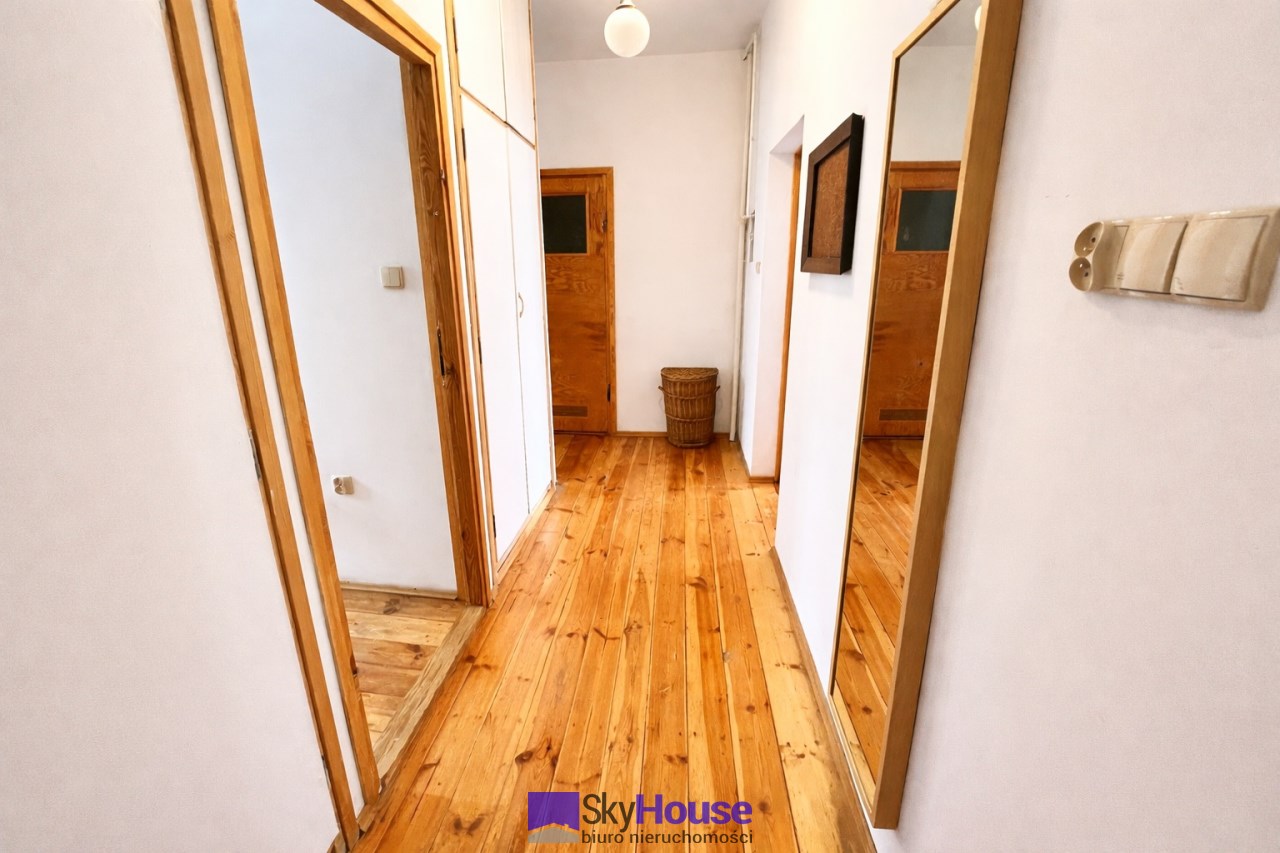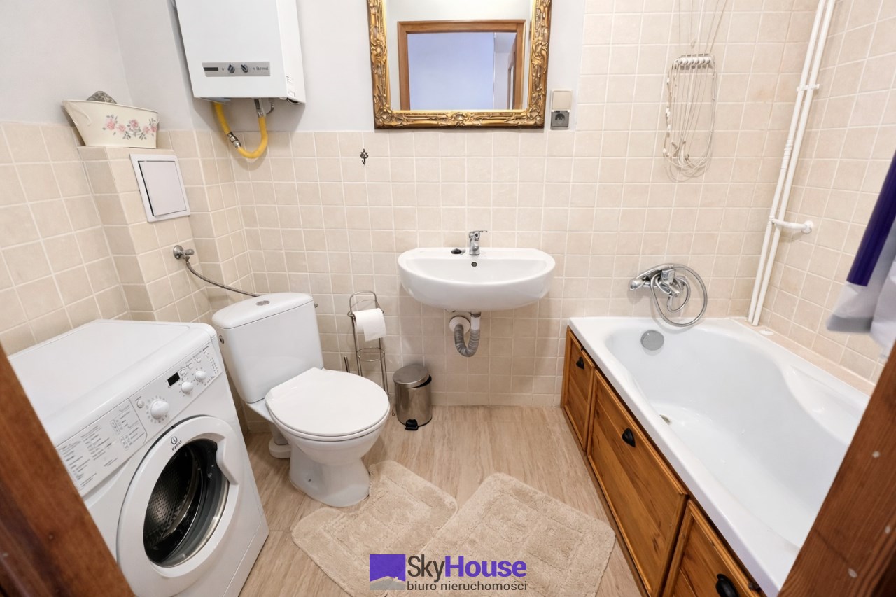 Jasne, przytulne wnętrza. Na podłodze deska. Mieszkanie jest w pełni wyposażone i przygotowane do zamieszkania. Kuchnia z meblami i sprzętem AGD: zmywarka, lodówka, kuchenka, piekarnik, małe agd. Dwa przestronne pokoje, łazienka z wanną i pralką. W przedpokoju dwie pojemne szafy w zabudowie. Ogrzewanie miejskie.