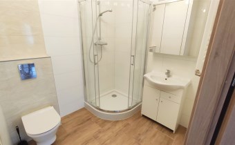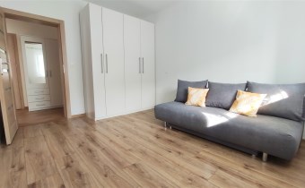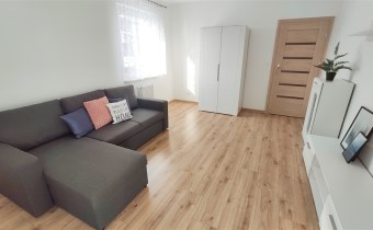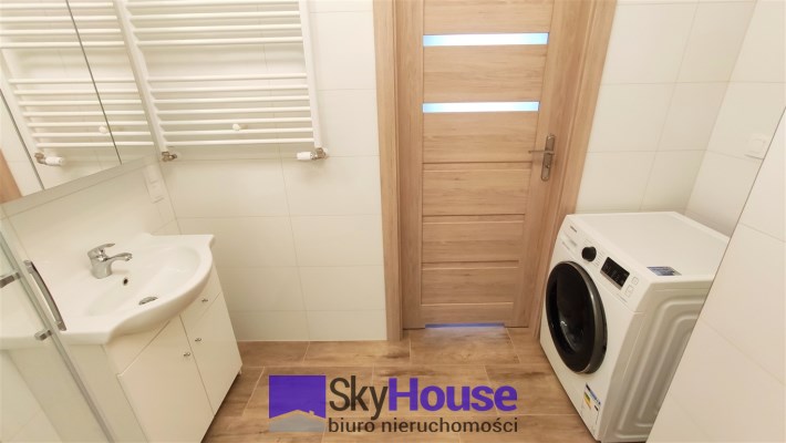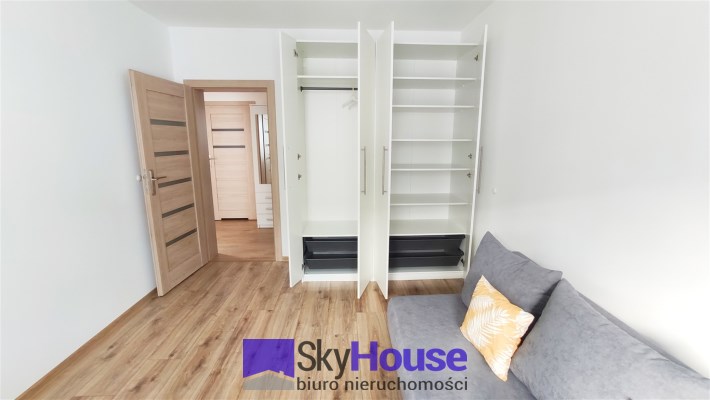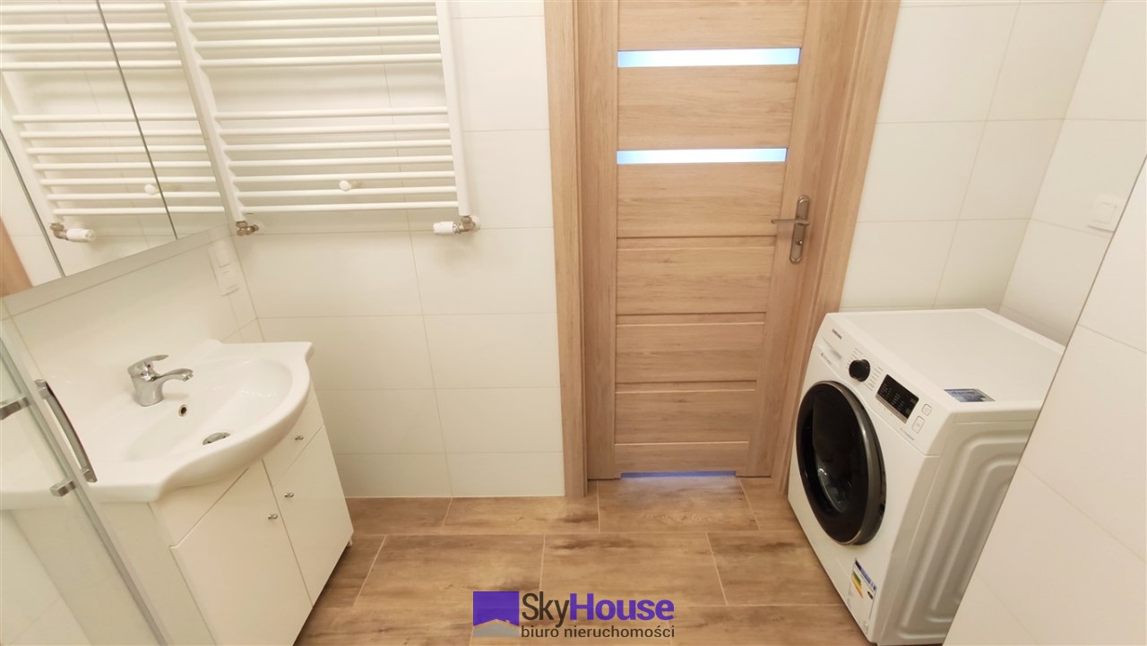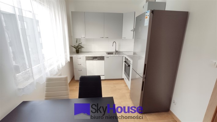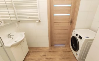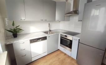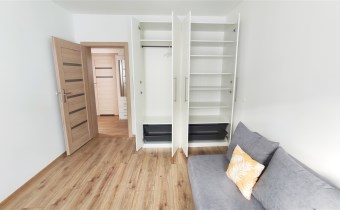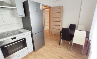 Mieszkanie jest w pełni wyposażone, umeblowane i gotowe do wprowadzenia. Kuchnia z meblami i sprzętem AGD (lodówka, piekarnik, płyta, zmywarka) oraz stołem z krzesłami. Dwa niezależne pokoje z rozkładanymi kanapami i meblami. Z większego pokoju wyjście na duży balkon. W przedpokoju dodatkowe miejsce do przechowywania rzeczy - wygodna szafa oraz komoda. Łazienka z prysznicem i pralką.